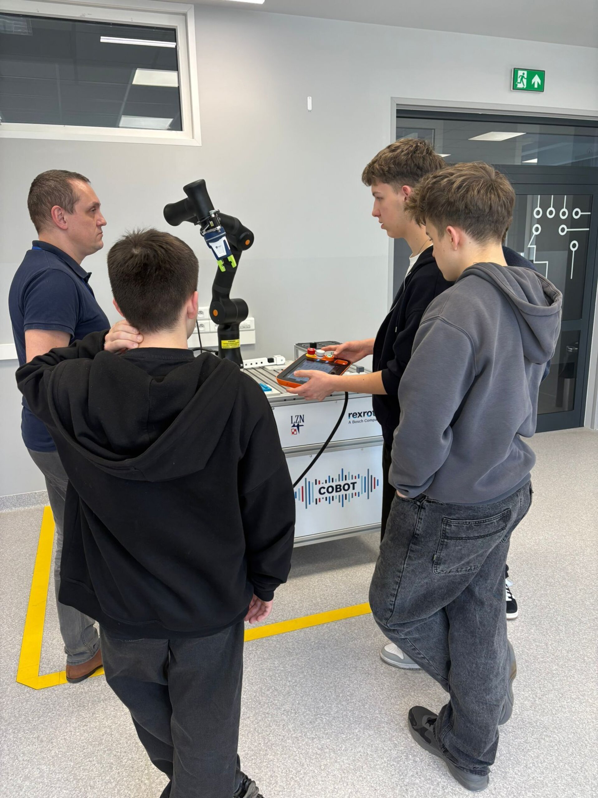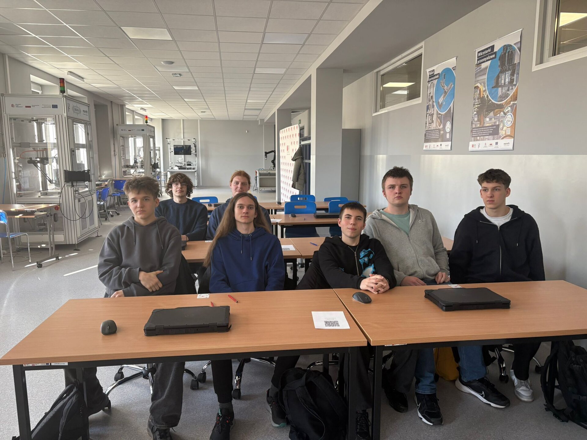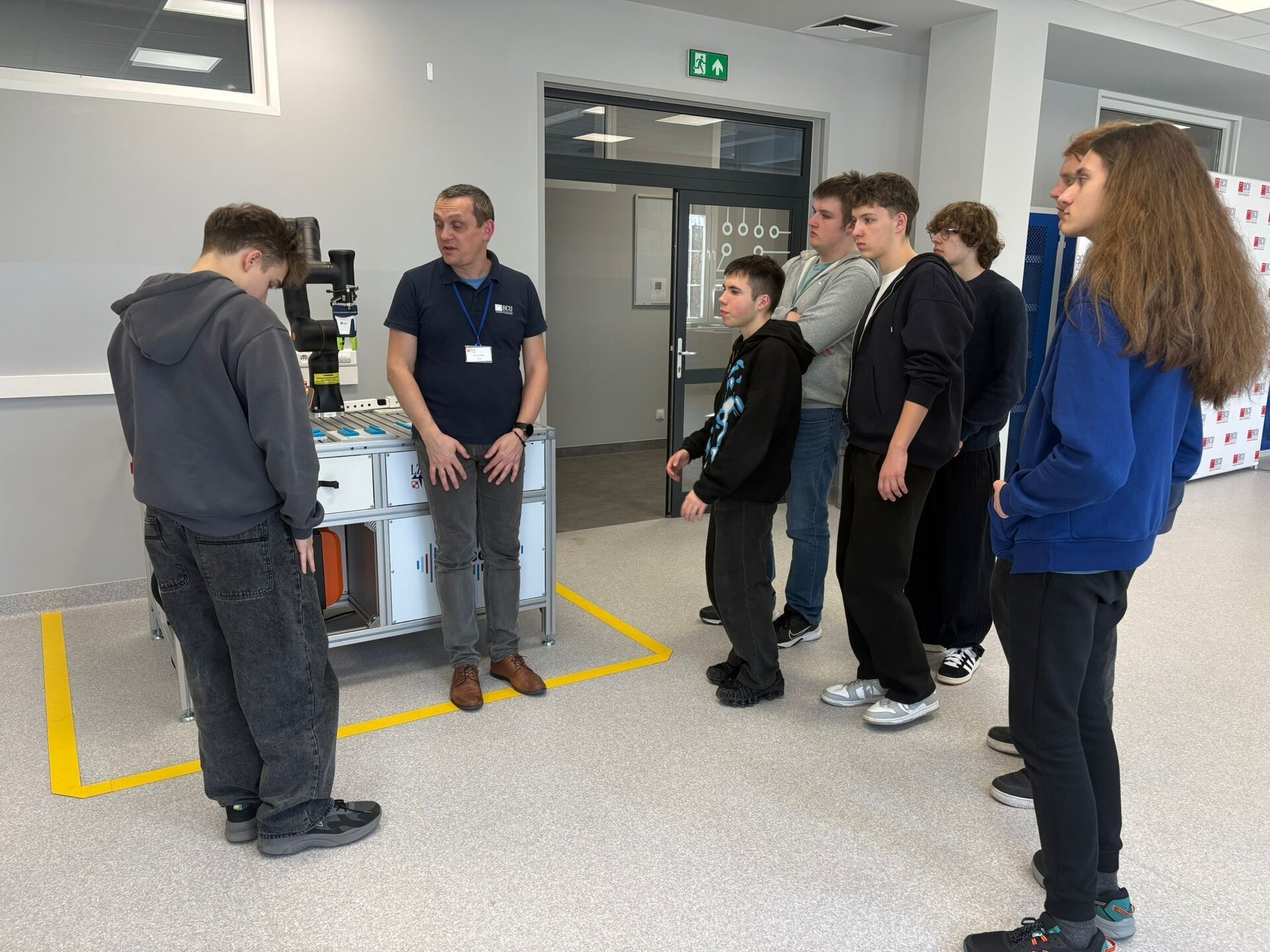 5 marca grupa uczniów klasy 3B wzięła udział w seminarium „Oblicza automatyki przemysłowej”, promującym zawody i kształcenie w dziedzinie automatyki i robotyki. Wizyta odbyła się w Branżowym Centrum Umiejętności nr 1 we Wrocławiu pod opieką Pani Marii Górskiej oraz Pani Katarzyny Gientkowskiej. Podczas warsztatów uczniowie poznali podstawy programowania sterowników PLC, zobaczyli w działaniu roboty mobilne (AMR) oraz cobota, a także odwiedzili pracownie i linię produkcyjną związaną z ideą Przemysłu 4.0. Dowiedzieli się również, jak w praktyce wygląda współpraca ludzi i robotów w nowoczesnym przemyśle. To była świetna okazja, aby zobaczyć nowoczesne technologie w praktyce i poznać możliwości rozwoju w branży automatyki i robotyki!