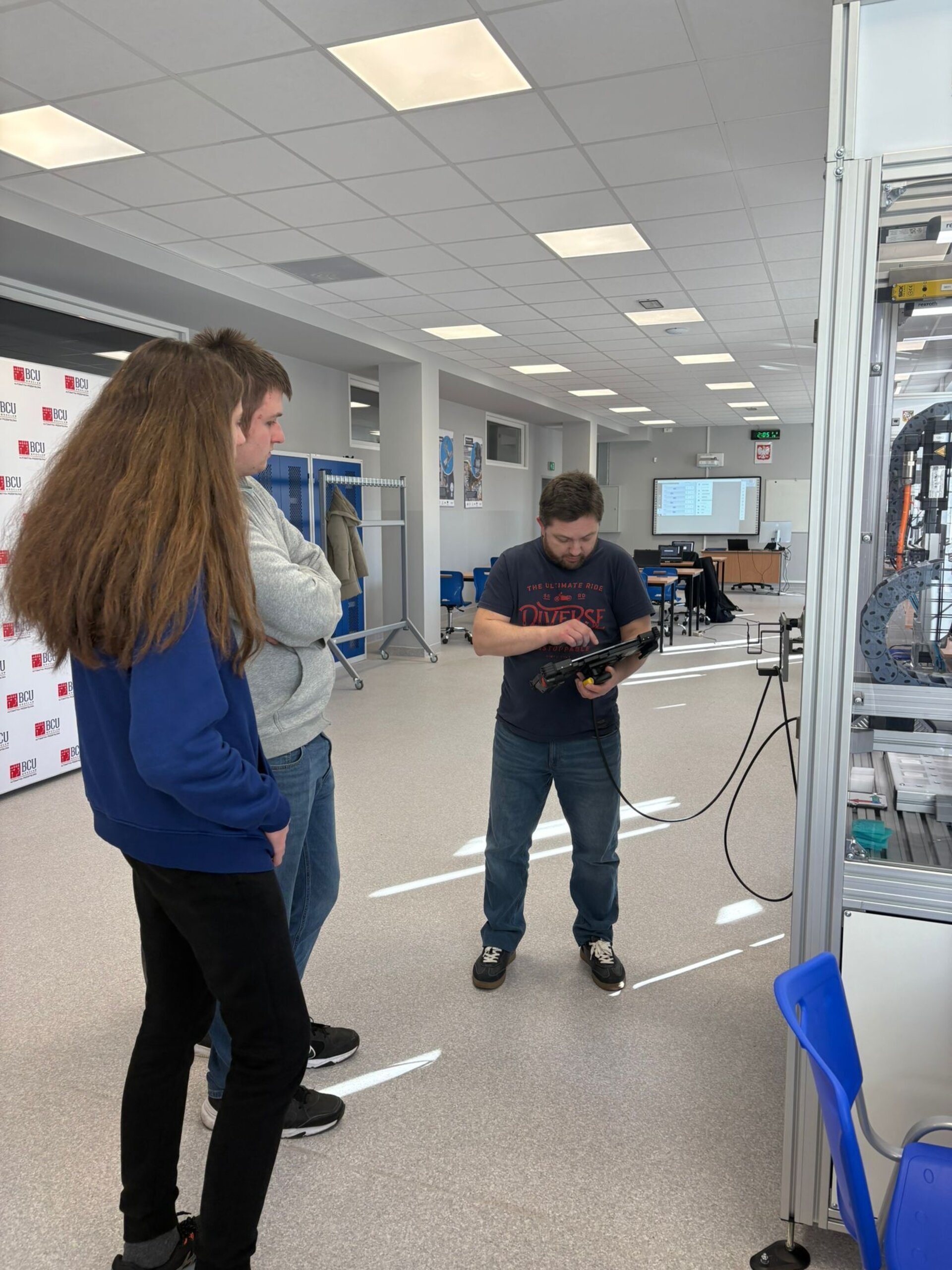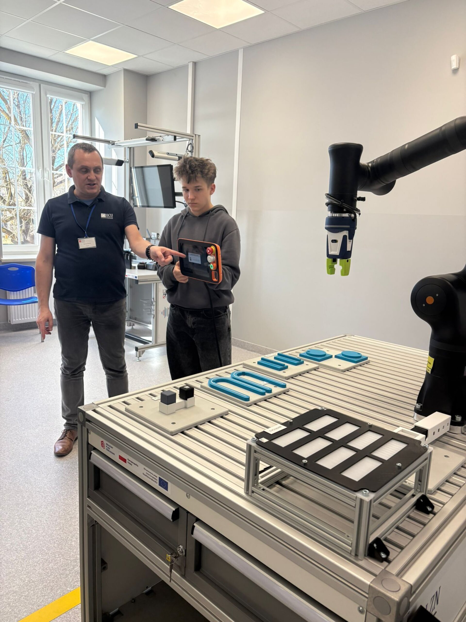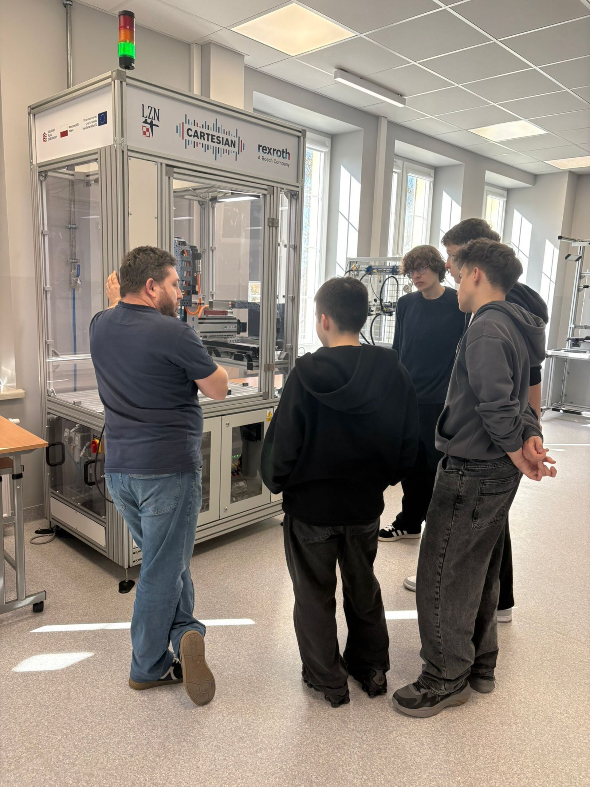 5 marca grupa uczniów klasy 3B wzięła udział w seminarium „Oblicza automatyki przemysłowej”, promującym zawody i kształcenie w dziedzinie automatyki i robotyki. Wizyta odbyła się w Branżowym Centrum Umiejętności nr 1 we Wrocławiu pod opieką Pani Marii Górskiej oraz Pani Katarzyny Gientkowskiej. Podczas warsztatów uczniowie poznali podstawy programowania sterowników PLC, zobaczyli w działaniu roboty mobilne (AMR) oraz cobota, a także odwiedzili pracownie i linię produkcyjną związaną z ideą Przemysłu 4.0. Dowiedzieli się również, jak w praktyce wygląda współpraca ludzi i robotów w nowoczesnym przemyśle. To była świetna okazja, aby zobaczyć nowoczesne technologie w praktyce i poznać możliwości rozwoju w branży automatyki i robotyki!
